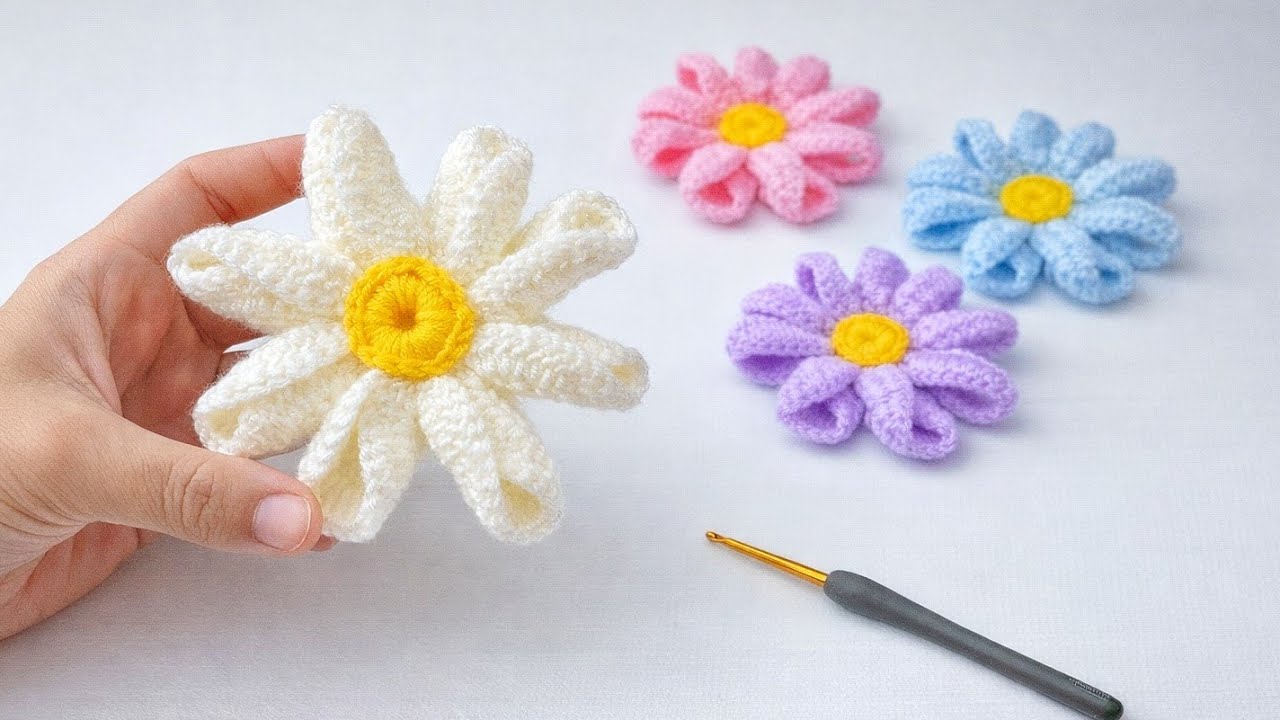 Here is a step-by-step tutorial to crochet this small daisy flower with a pearl center 🌼 (like in your picture). 🌼 Detailed Crochet Daisy Tutorial 🧶 Materials Cotton or acrylic…
