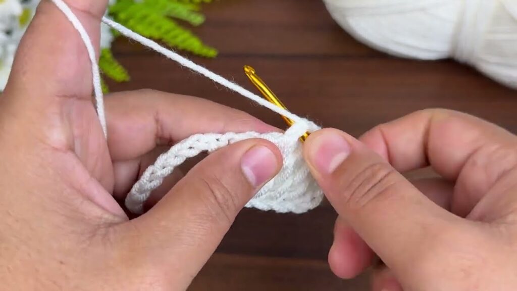 - Work hdc in the first 10 stitches, then stop — don’t go all the way to the end.