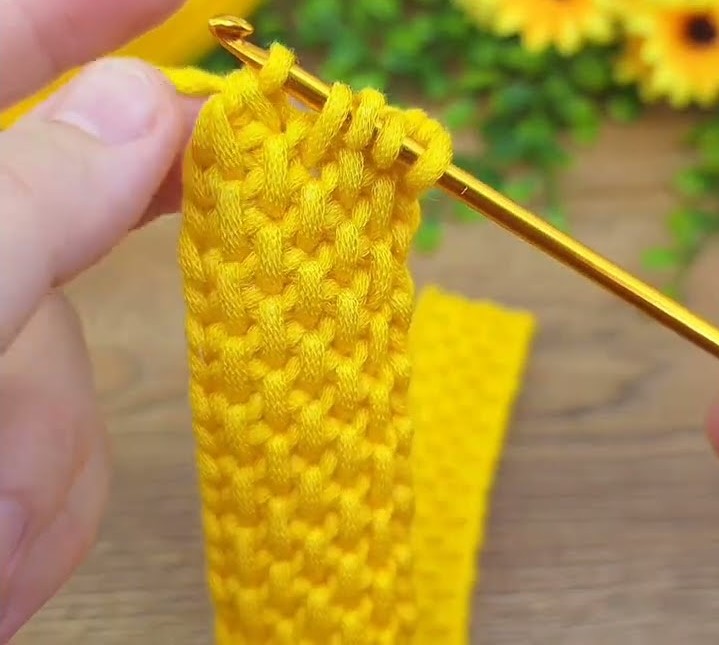 The crochet technique shown in your image is the Tunisian Simple Stitch (TSS) — a classic Tunisian crochet method that creates a neat, woven-looking texture. Here’s how to make it step by step 👇