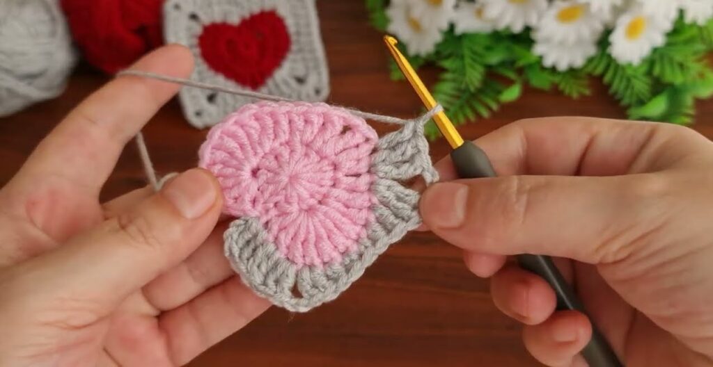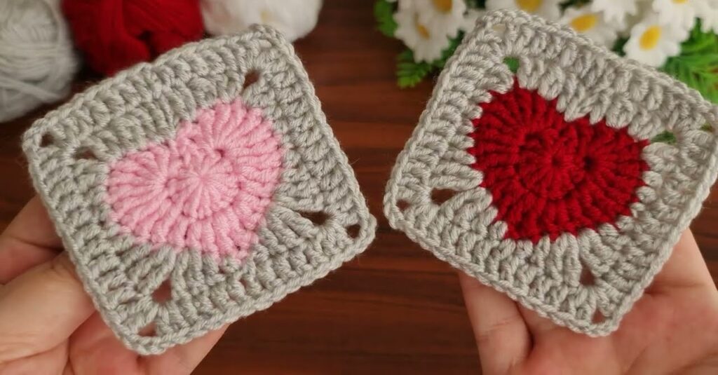 They combine a heart motif in the center with a traditional granny square border. I can guide you step-by-step on how to make one like in your image.