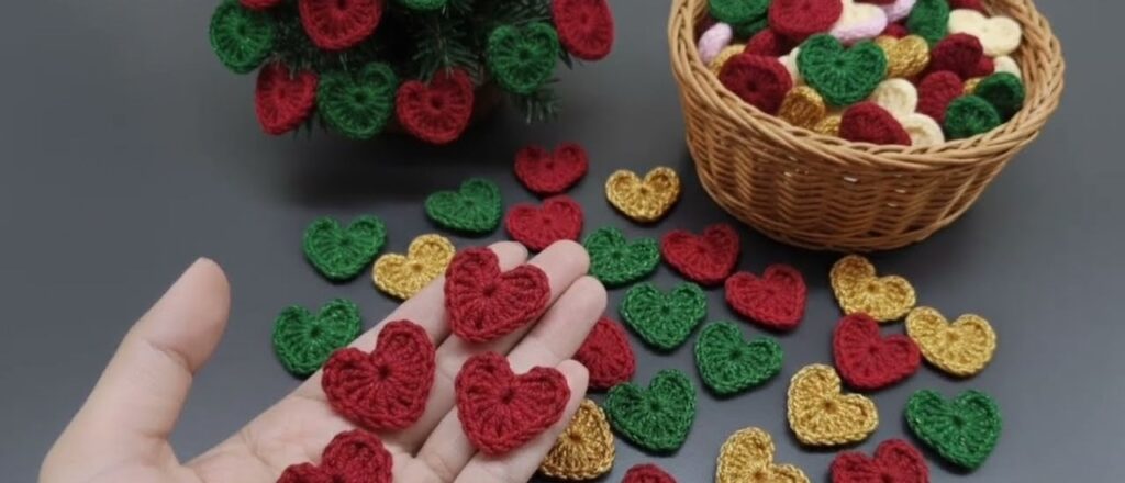 π These are small crochet hearts, perfect for decorations, garlands, or appliquΓ©s. Iβll show you a simple step-by-step way to make exactly this kind of heart.