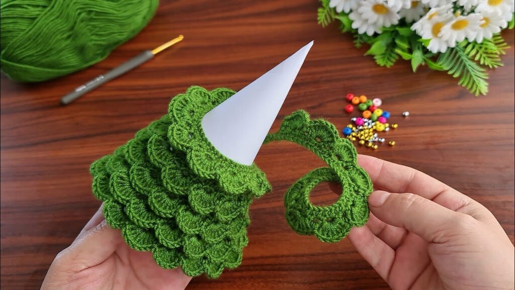 It looks like the image shows a crochet Christmas tree made with a crocodile stitch pattern. I’ll guide you step by step on how to make it like in your photo.