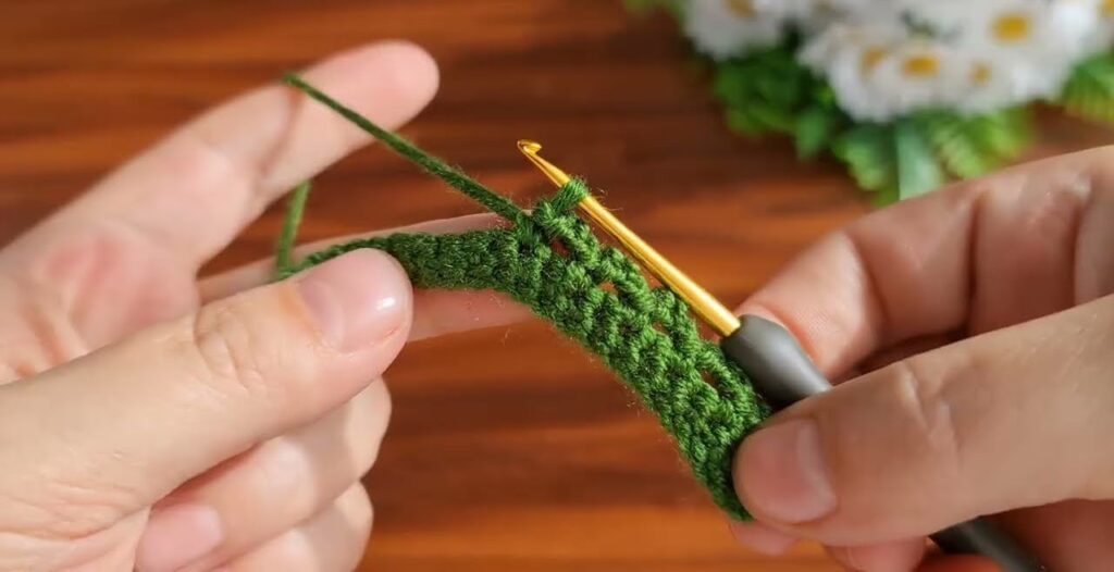 → This means in each of the 10 stitches, you will crochet 2 dc. - You’ll have 20 dc total.