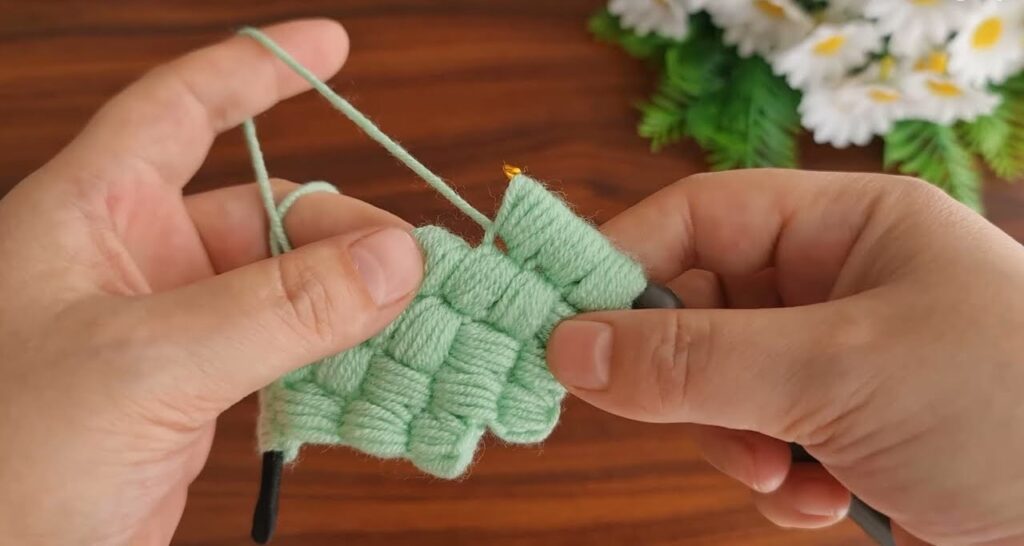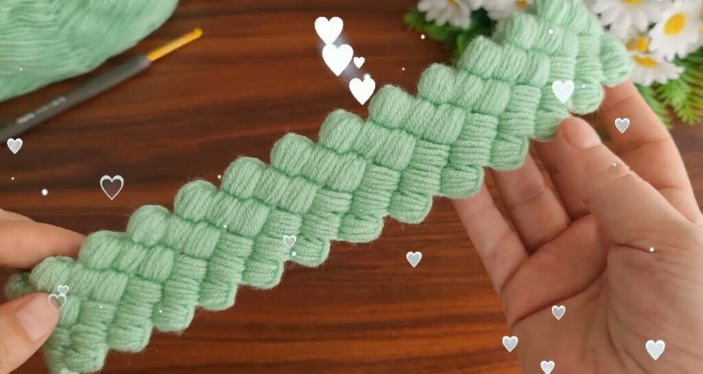 This is a crochet puff braid (or puff stitch braid). It’s made using puff stitches (or elongated loops) worked in a way that creates a woven, 3D texture. I’ll guide you step by step so you can make it: