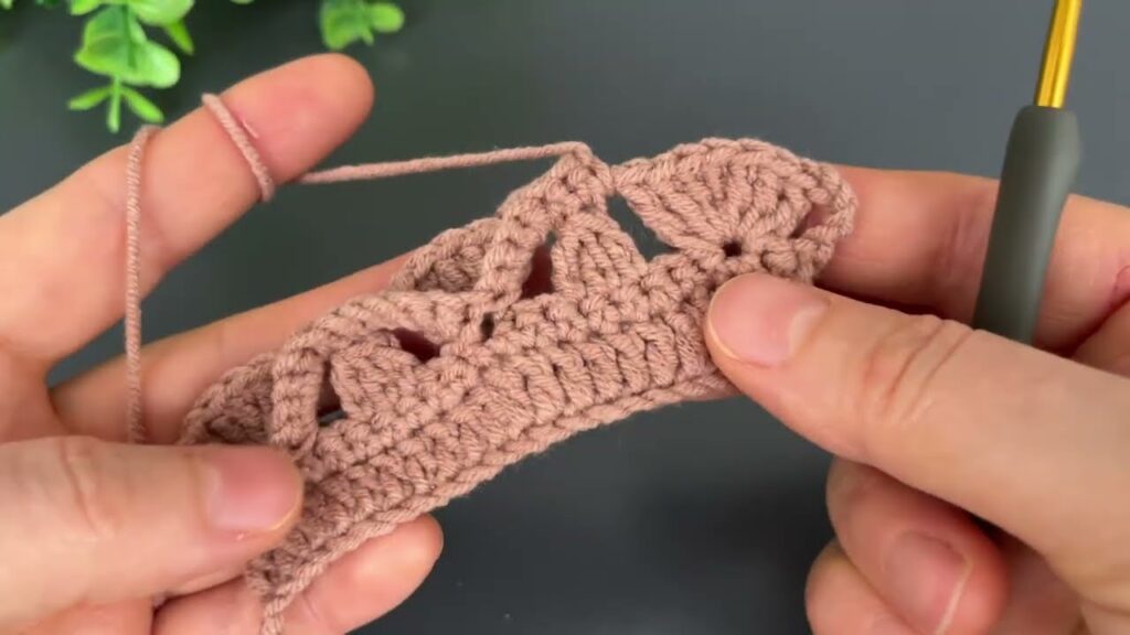 Work 5โ6 rows of plain sc before starting next leaf section.
