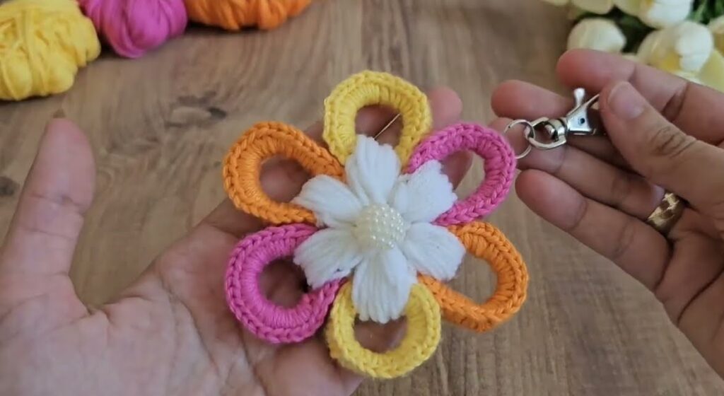 - You will wrap yarn in a loop through the gap — this keeps every petal same size.