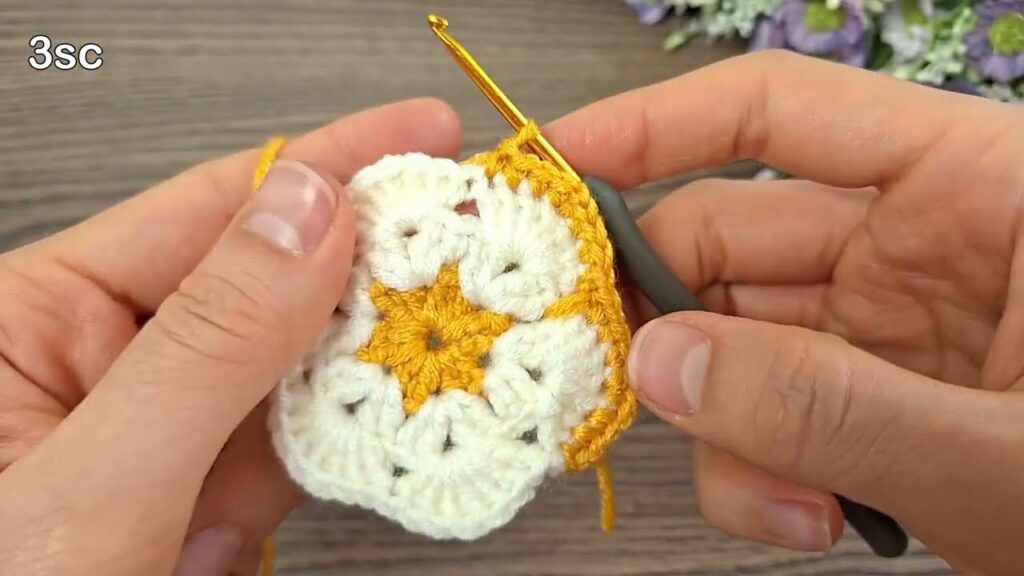 💠 Tip: Don’t crochet too tightly here — this round gives the motif its 6-sided shape.