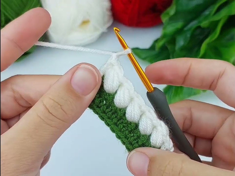 This looks like a crochet long loop / elongated puff stripe stitch worked in rows, with contrast-color single crochet rows between the textured rows. Iβll explain a clear, practical way to make this exact look.