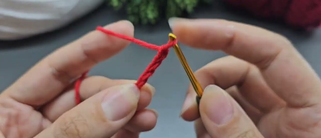 - Insert hook → yarn over → pull through → yarn over → pull through 2 loops