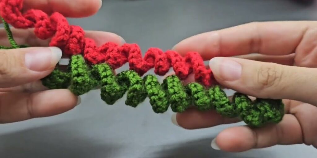 - Yarn: Red + Green + White (medium or bulky yarn is best)