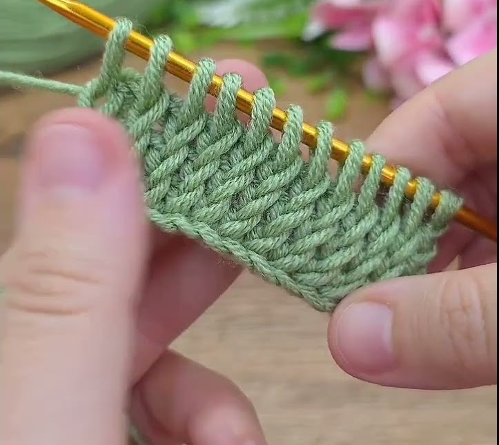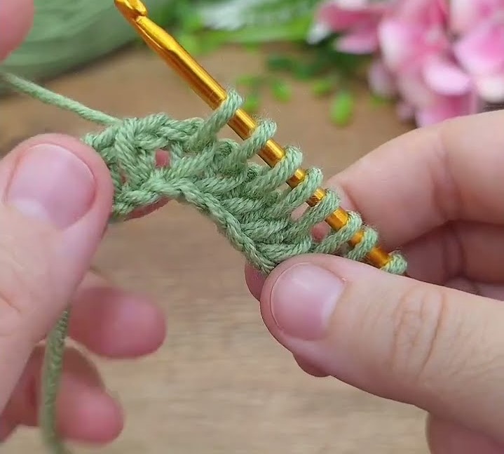 4️⃣ Next Row — Tunisian Simple Stitch Pattern