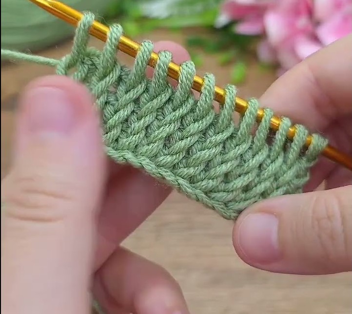 After a few rows, you’ll see the signature woven knit-like texture forming — exactly like in the photo.